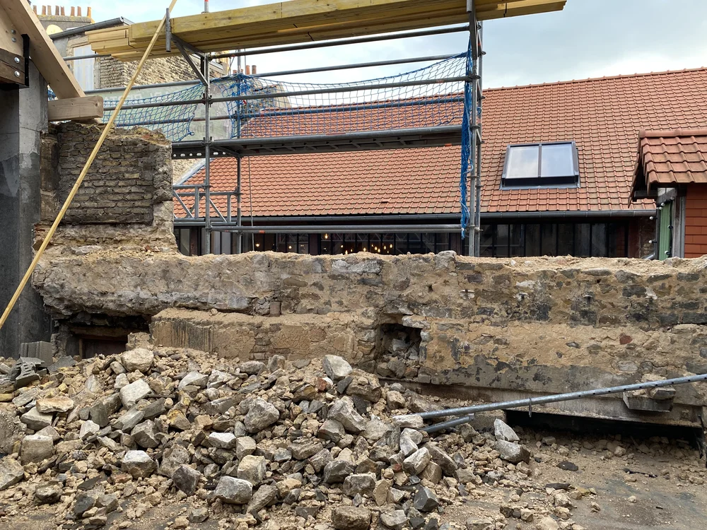 CMI Audomarois, votre entreprise de construction et de rénovation basée à Saint-Omer, vous présente la suite d'un chantier de démolition à Boulogne-sur-Mer. Nous avons récemment démoli un mur en laissant une hauteur de 1,20 mètre pour créer un garde-corps, anticipant ainsi la future terrasse à la cave de Monsieur Guy.