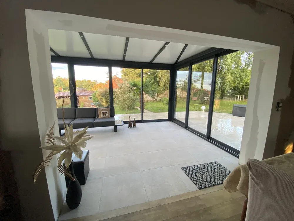 En tant que spécialistes de la construction et de la rénovation, nous avons également pris en charge l'isolation du sol avec un isolant polyuréthane, suivi de la chape et la pose de carrelage 60x60 avec joint. Nos compétences en maçonnerie nous ont permis de plaquer les HEB et de finaliser le mur de la véranda, garantissant une finition impeccable.